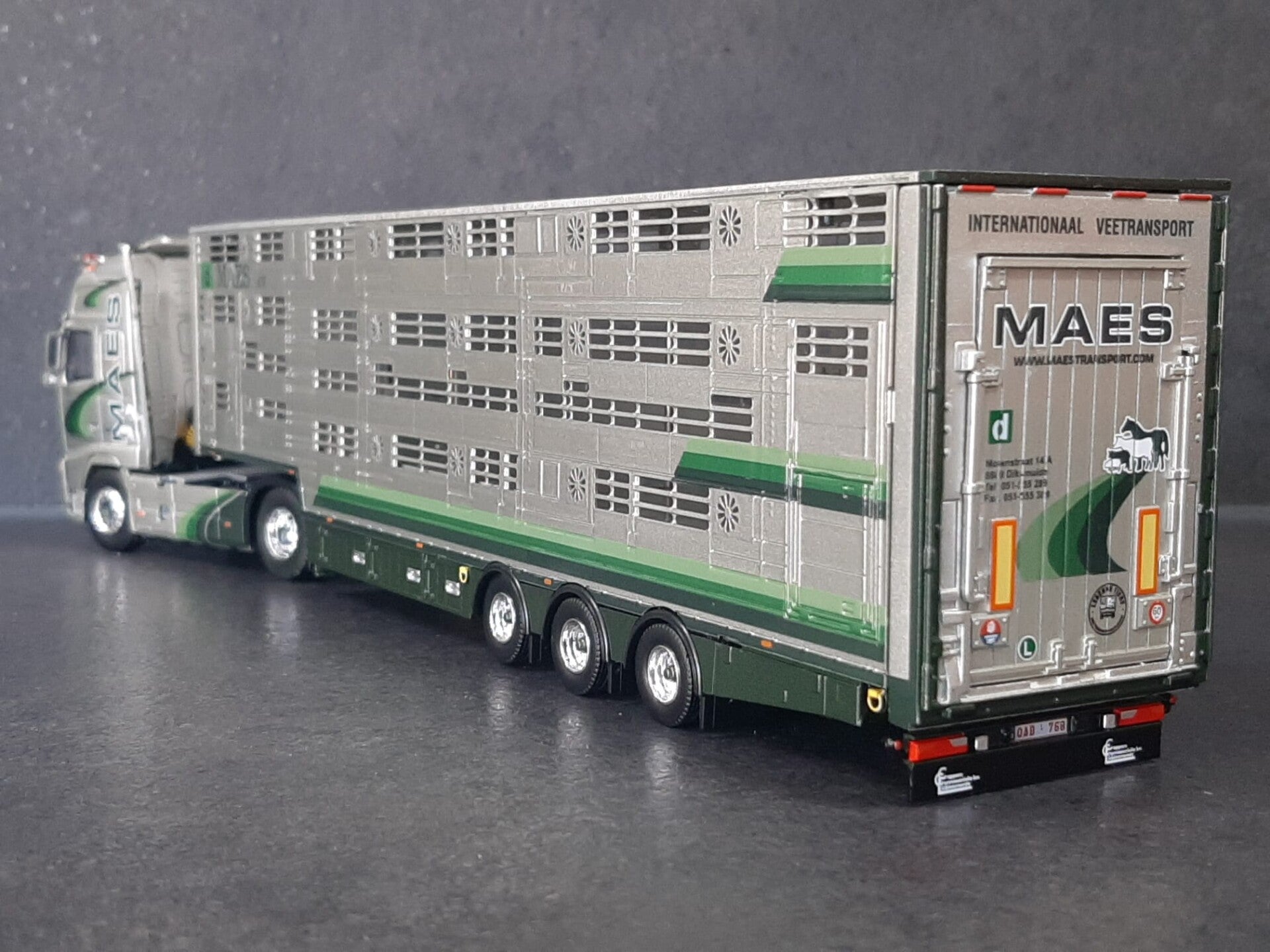 TEKNO Maes Volvo FH02 Globetrotter met 3-assige Pezzaioli veeopleggerFabrikant: TEKNOSchaal 1/50Product code: 85999prijs € 185,00