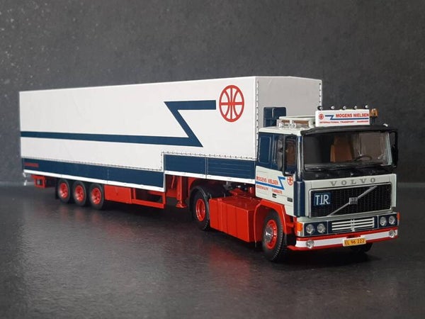 TEKNO Mogens Nielsen Volvo F12 4x2 met klassieke zwanenhals huiftrailerFabrikant: TEKNOSchaal 1/50Product code: 84009prijs € 179,00