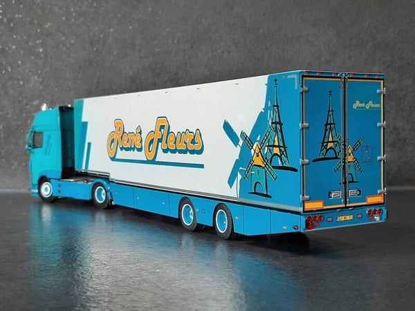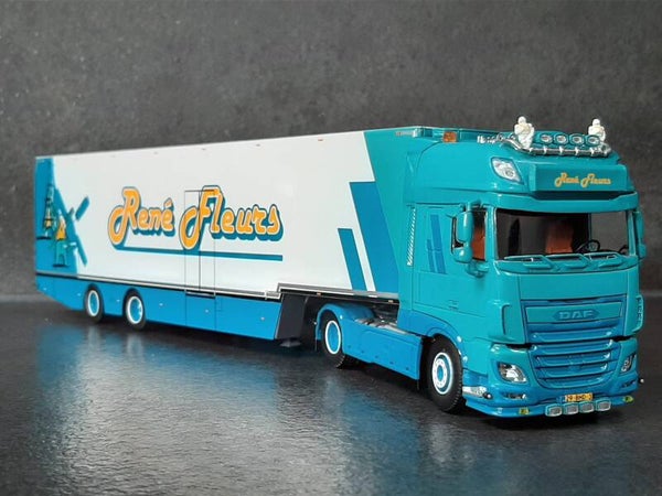 TEKNO Rene Fleurs DAF XF euro 6 met 2-assige zwanenhals koelopleggerFabrikant: TEKNOSchaal 1/50Product code: 72949prijs € 145,00De doos is in mindere staat, het model is in goede conditie.