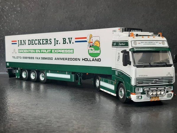 TEKNO Jan Deckers Volvo FH01 Globetrotter XL met 3-assige koelopleggerFabrikant: TEKNOSchaal 1/50Product code: 85750prijs € 169,00