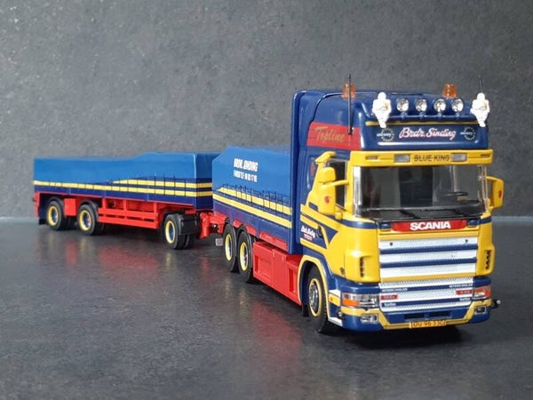 TEKNO Brdr Sinding Scania 4-serie Topline motorwagen aanhanger met (resin) afgedekte ladingFabrikant: TEKNOSchaal 1/50Product code: 81276prijs € 219,00